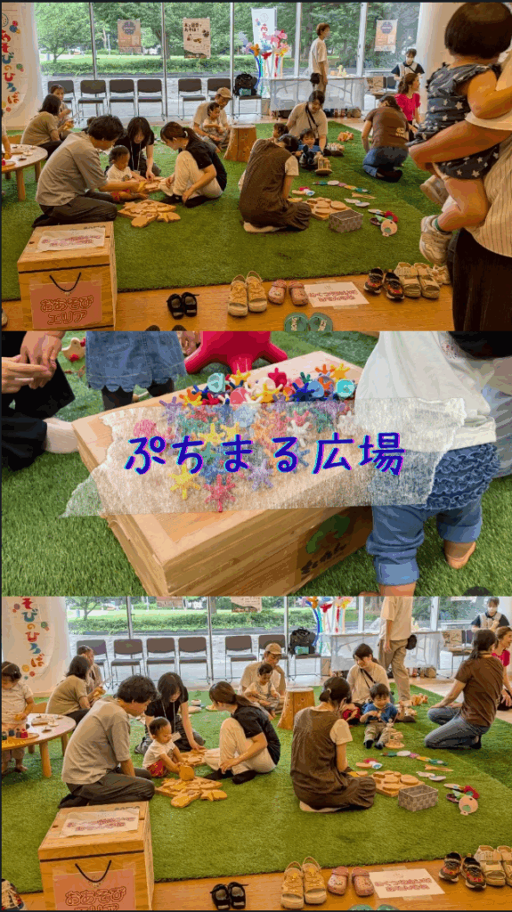 7月6日に開催されたアリオスキッズルームプログラム「ぷちまる広場」には、たくさんの方が来場されました。木製おもちゃ
