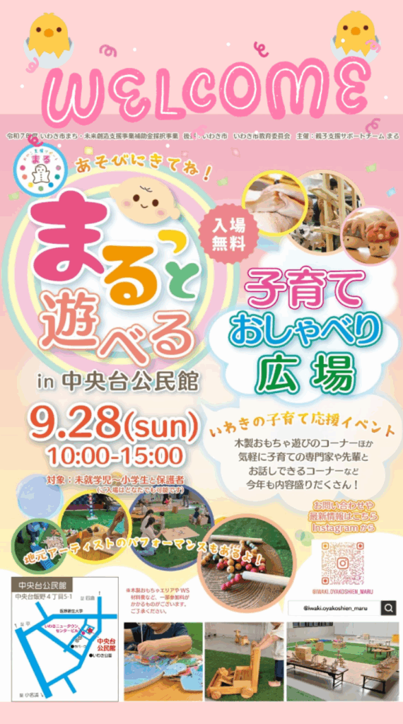 9月28日「まるっと遊べる 子育ておしゃべり広場」を開催する「いわき親子支援サポートチーム まる」の活動を紹介しま