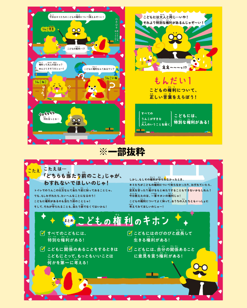 この冊子ではうんこ先生が『こどもの権利』についてわかりやすく解説してくれています。
